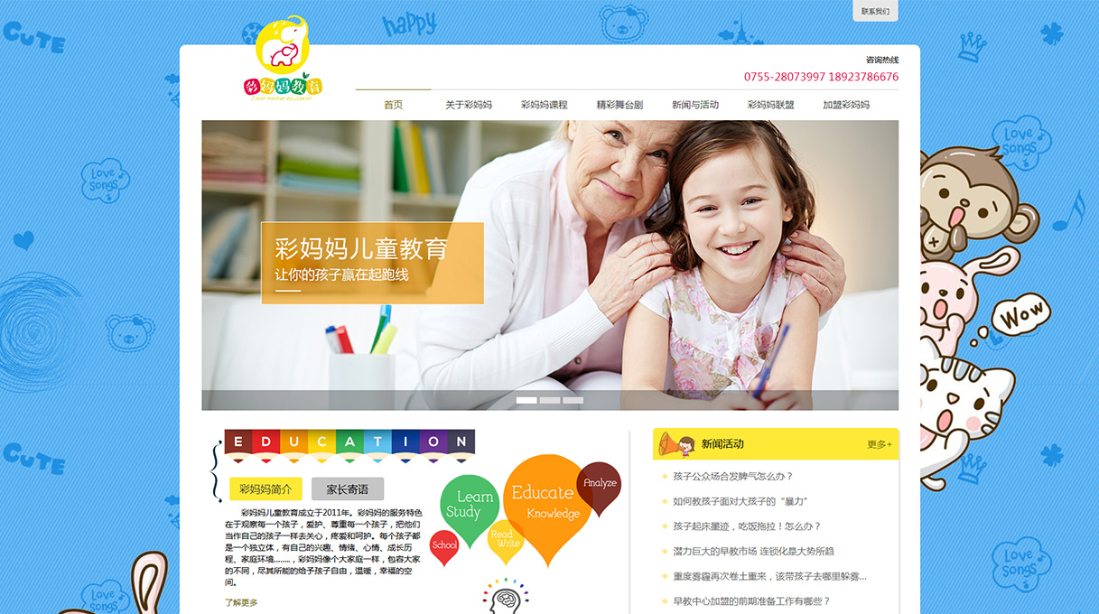 彩媽(mā)媽(mā)兒(ér)童教育成立于2011年(niá >÷n)。彩媽(mā)媽(mā)的(de)服務特色在于觀察每一(yī)個(©←gè)孩子(zǐ),愛(ài)護、尊重每一(yī)個( ←• gè)孩子(zǐ),把他(tā)們當作(zuò)自(✘ zì)己的(de)孩子(zǐ)一(yī)樣去(qù)關心,疼愛'¶≠Ω(ài)和(hé)呵護。